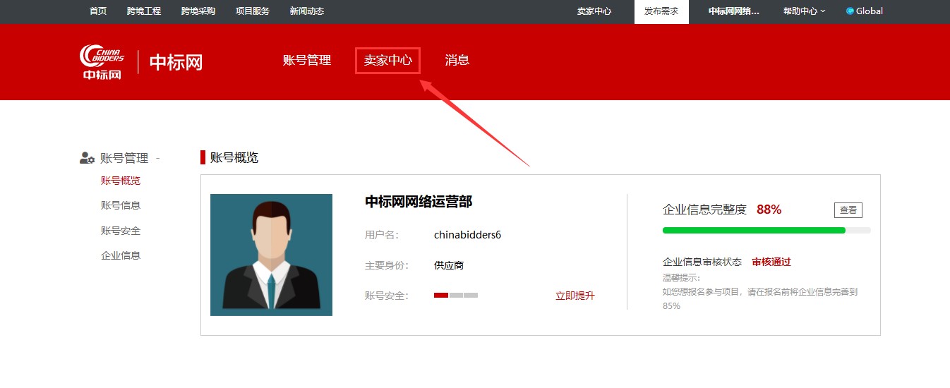 8.登录中标网进入会员中心-卖家中心;